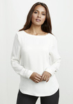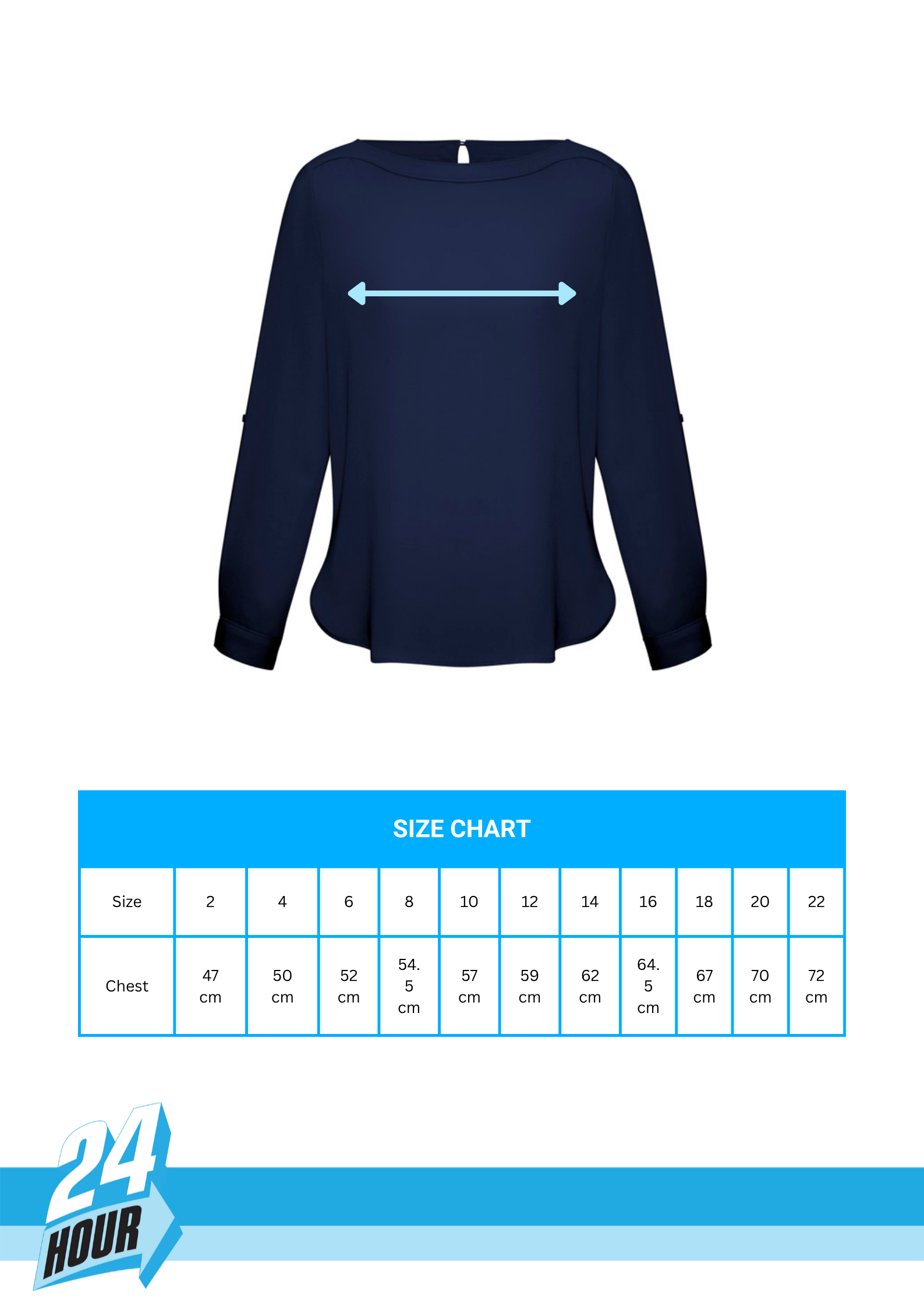 100% Polyester Mechanical Stretch fabric Wrinkle resistant, fuss free fabric with flattering drape Finely stitched Boatneck detail Sleeves have a versatile roll-up tab function Longer length with shirt-tail hem designed to be worn out or tucked in Gently shaped through the torso for a streamlined silhouette