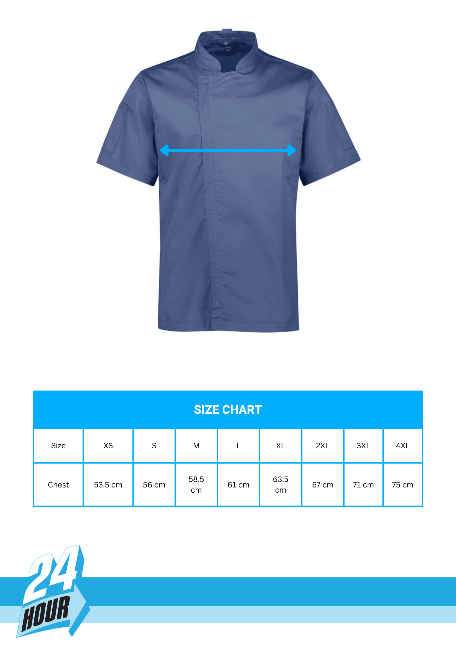 Keep it cool and efficient in the kitchen with this lightweight, zip front chef jacket. Made from cotton and recycled yarn that’s both durable and comfortable. 65% Certified Recycled PET Polyester, 35% Cotton Twill, 160 GSM; UPF Rating 50+ Concealed zip front closure delivers a clean minimalist look Lightweight twill cloth with underarm mesh ventilation keeps you cool where you need it most Mandarin collar with apron tab to hold apron in place 2 Sleeve thermometer/pen pockets Long length with side splits for ease Long sleeve style features roll-up sleeve function with inside tab and button
