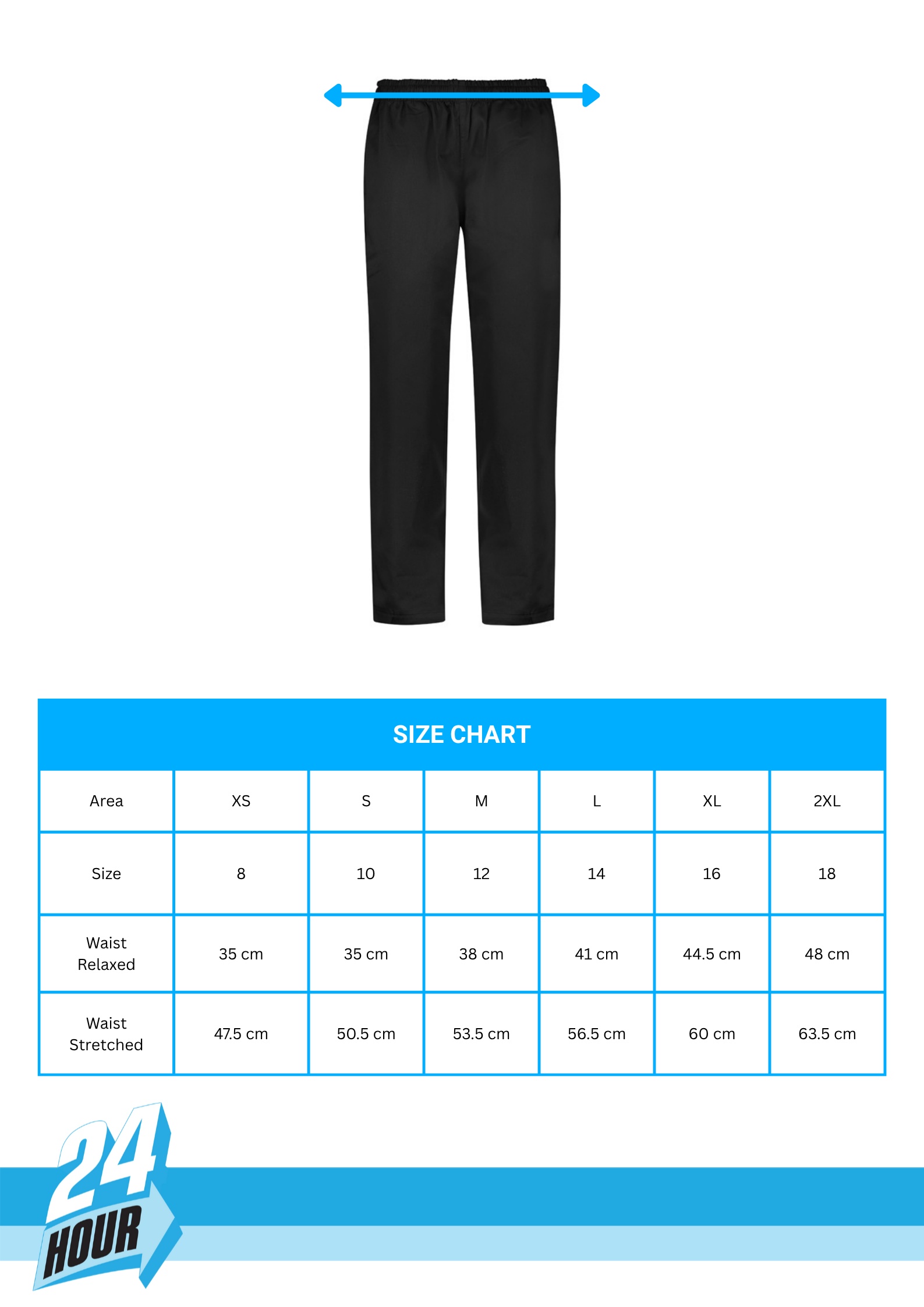 Comfort is key with these modern, loose fitting chef pants. Lightweight and durable with deep side pockets and a gently elasticated waist for that cool casual look. 65% Polyester, 35% Cotton, 180 GSM; UPF Rating 50+ Modern loose-fit pull-on style Wider elasticated waistband with drawstring for a comfortable fit 2 Deep side pockets and 2 back patch pockets Full length with straight hem for easy alterations