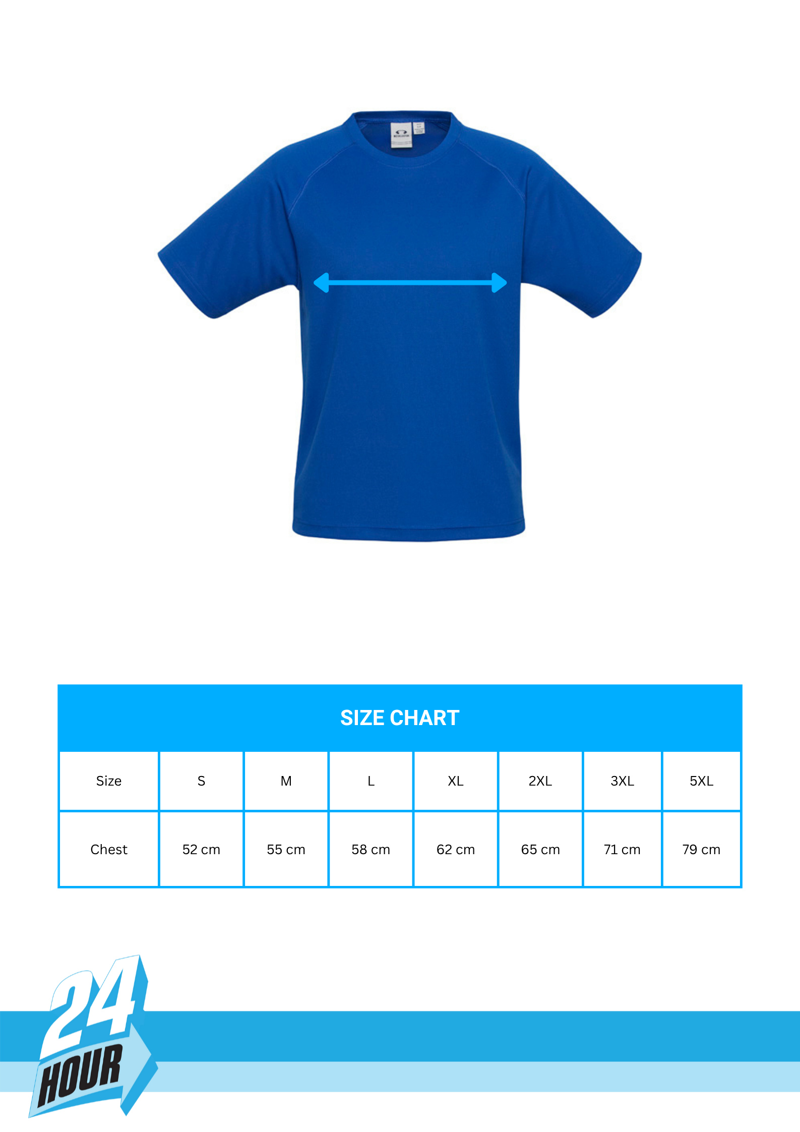 Clean and simple solid colour tee. Made with an open-weave breathable fabric that’s quick drying, durable and affordable. A classic t-shirt style for use in any activity. 100% Breathable Polyester, mesh, 145 GSM; UPF Rating 50+ Crew neck with self fabric band Durable flat lock raglan armhole