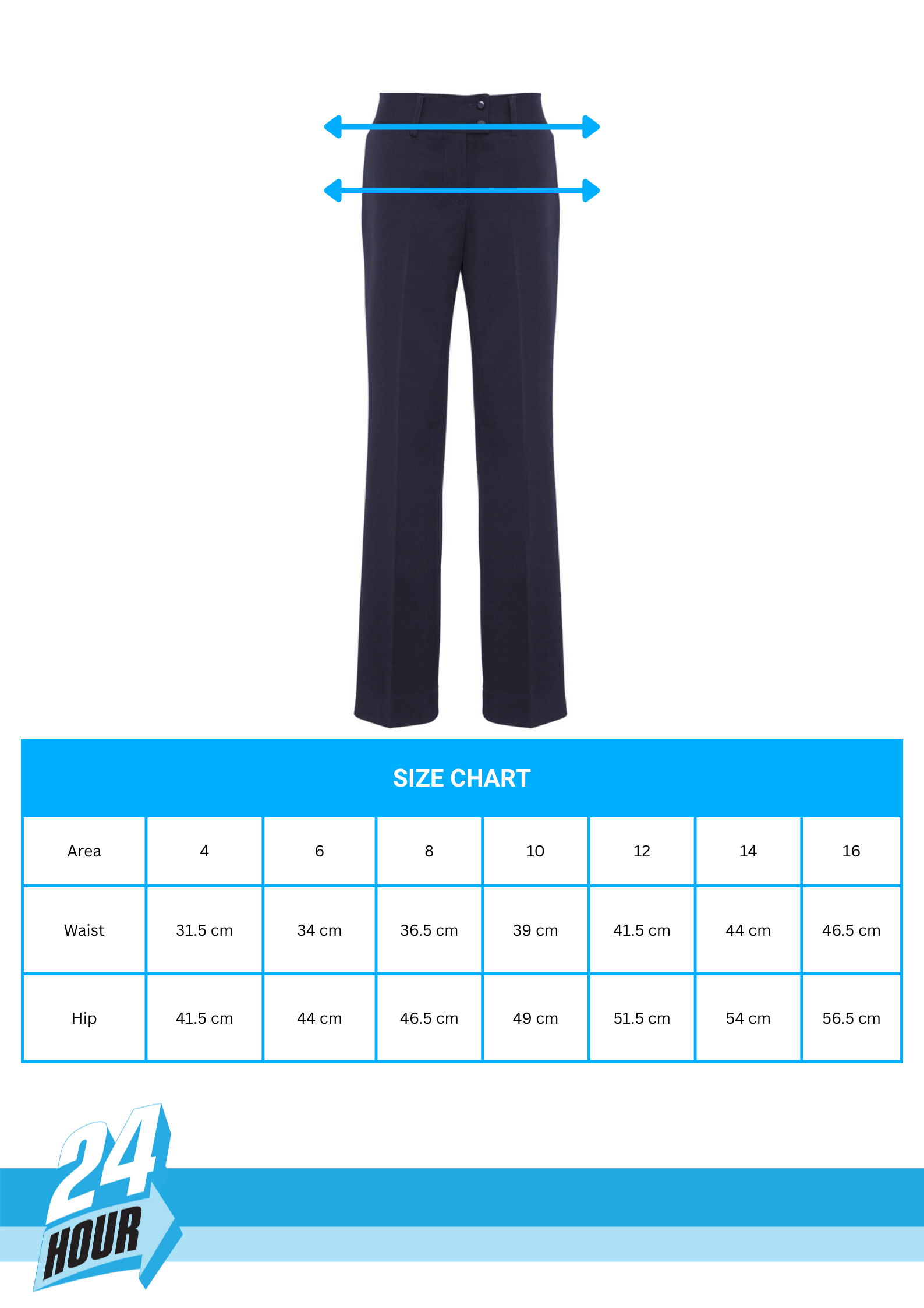 The Perfect Pant is a classic work pant series available in three body fits: Eve, Stella and Kate. The Kate fit is the perfect pant if you find pants fit at the waist but are often too loose at the hip, if you have a slimmer thigh or slender build. Made in our best-selling 4-way stretch fabric to allow maximum comfort and minimal creasing. 4-Way Stretch 62% Polyester, 34% Viscose, 4% Elastane KATE IS THE PERFECT PANT FOR YOU IF You find pants fit at the waist but are too loose at the hip You have a slimmer thigh You have a petite or slender build Midrise with a flattering wider waistband Low profile front and back pockets Classic straight leg shape