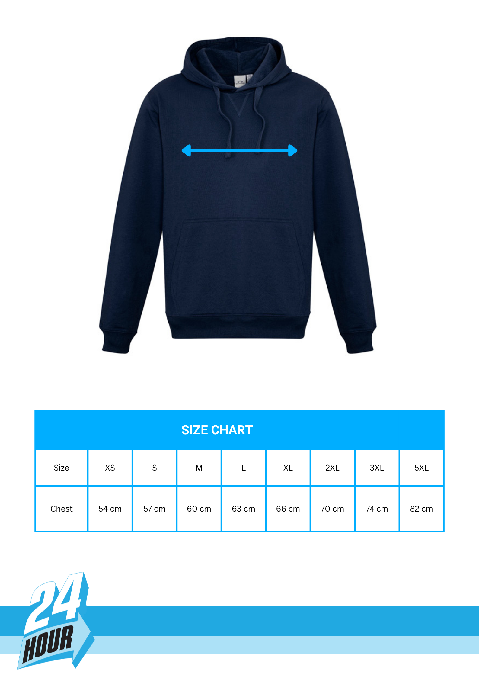55% Cotton Fleece/ 45% Polyester, 320gsm Traditional front kangaroo pocket Adults style features hood with wider ‘shoelace’ drawstring No drawstring on Kids – keeping kids safe Knitted ribbed band on hem and cuff